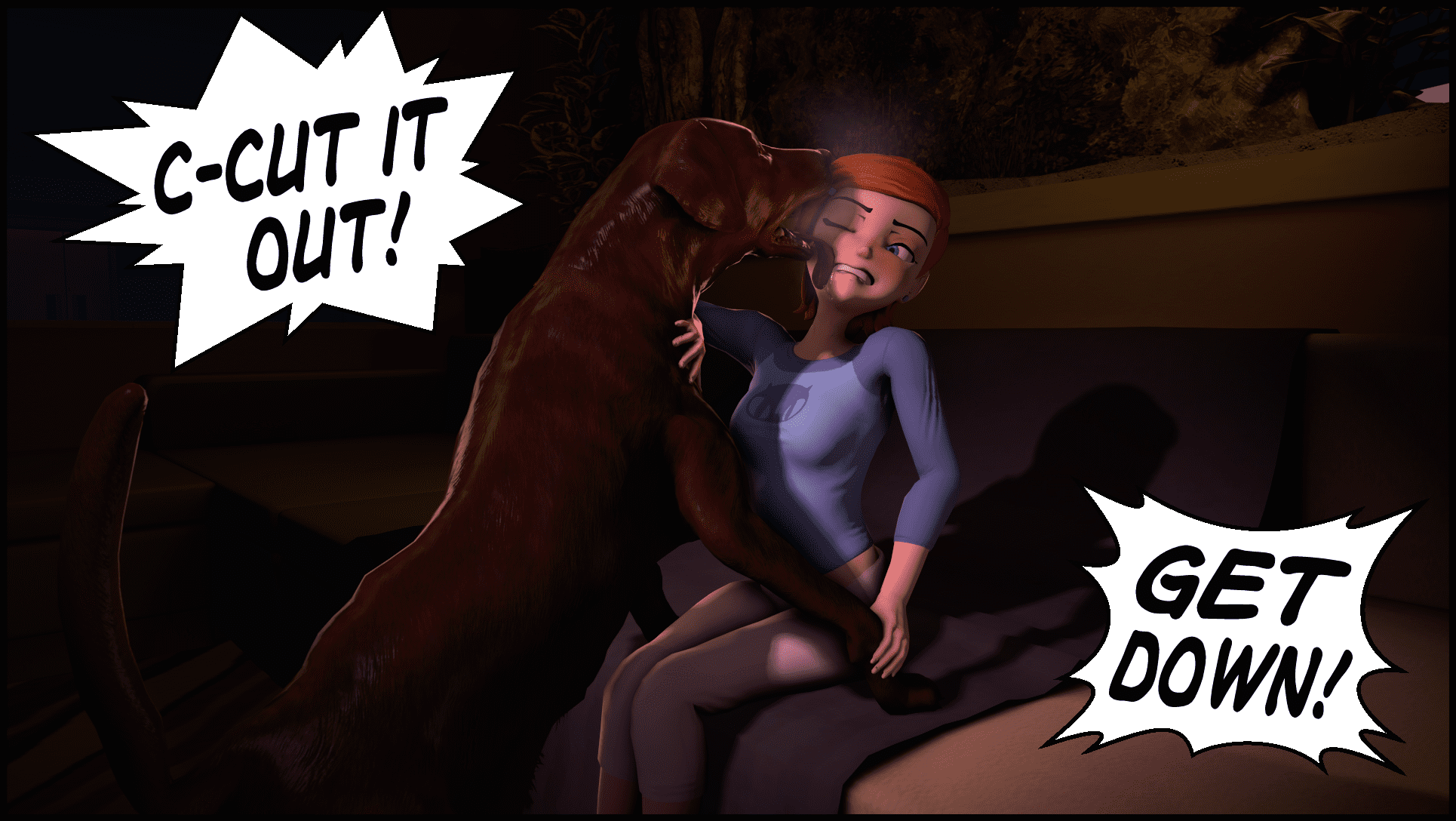 Gwen makes a decision to let a dog enter her mouth.